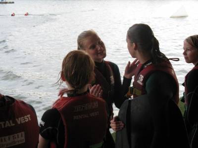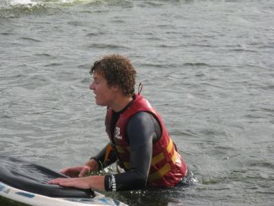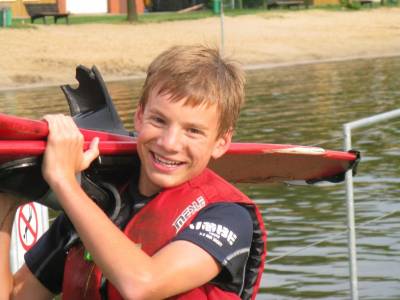 44 Jungen und Mädchen aus der Gemeinde Holdorf zwängten sich am Dienstagabend in die Neoprenanzüge und stürzten sich in die Fluten des Alfsees. Es gab so manchen Aufschrei wie kalt das Wasser sei und wie eng der Anzug. Während diejenigen, die schon mal dabei waren, sich die Bretter schnappten und sich sichtlich freuten als es endlich losging, musste sich so mancher Anfänger erst einmal ein Herz fassen. Aber alle hatten den Mut zum Ausprobieren und wurden mit viel Spaß belohnt. Am Ende war auf allen Gesichtern ein großes Lächeln zu sehen und es hieß zum Schluss: Ist es wirklich schon so spät?
